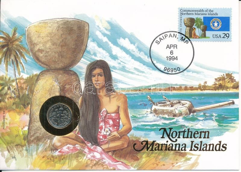 USA / Northern Mariana Islands 1994P 1 Dime in envelope with stamp, cancellation and a prospectus in german C:UNC