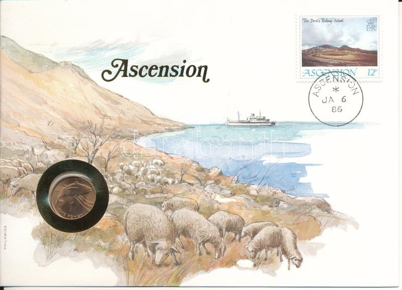 Ascension-sziget 1984. 1p bronz "II. Erzsébet" felbélyegzett borítékban, bélyegzéssel, német nyelvű leírással T:UNC