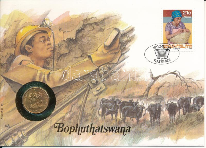 Bophuthatswana benne Dél-Afrika 1990. 2c Br felbélyegzett borítékban, bélyegzéssel, német nyelvű leírással T:AU Bophuthatswana with South Africa 1990. 2 Cents Br in envelope with stamp and cancellation, with german language description C:AU