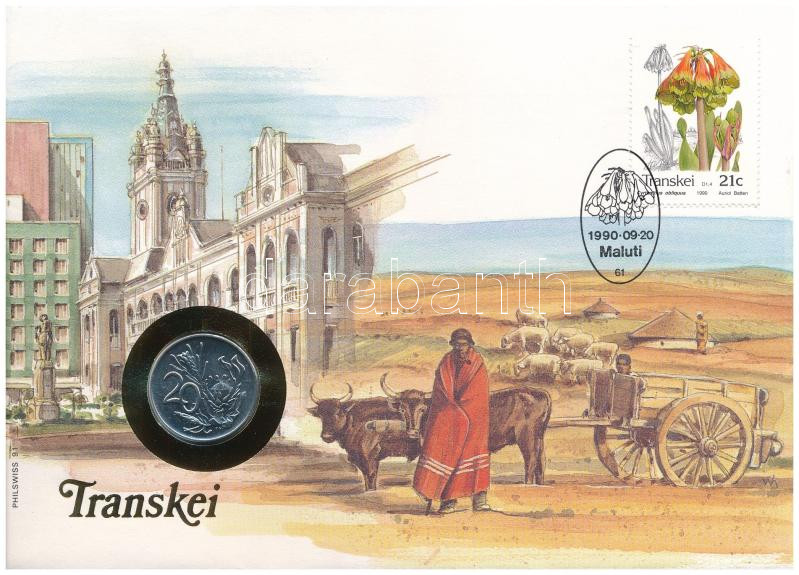 Dél-Afrikai Köztársaság / Transkei 1990. 20c Ni felbélyegzett borítékban, bélyegzéssel, német nyelvű tájékoztatóval T:AU South African Republic / Transkei 1990. 20 Cents Ni in envelope with stamp, cancellation and a prospectus in german C:AU