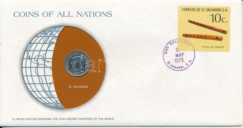 El Salvador 1977. 50c Ni "Nemzetek pénzérméi" felbélyegzett borítékban, bélyegzéssel T:UNC