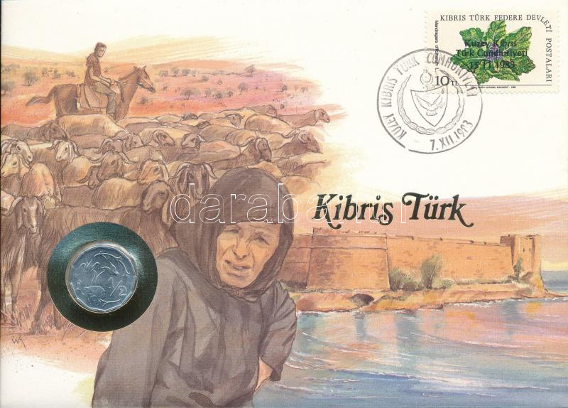 Észak-Ciprus / Észak-Ciprusi Török Köztársaság 1983. 1/2c Al felbélyegzett borítékban, bélyegzéssel, német nyelvű tájékoztatóval T:UNC Northern-Cyprus / The Turkish Republic of Northern Cyprus 1983. 1/2 Cent Al in envelope with stamp, cancellation and a prospectus in german C:UNC