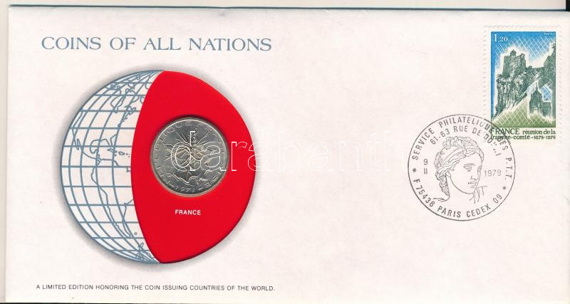 Franciaország 1978. 10Fr "Nemzetek pénzérméi" felbélyegzett borítékban, bélyegzéssel T:UNC