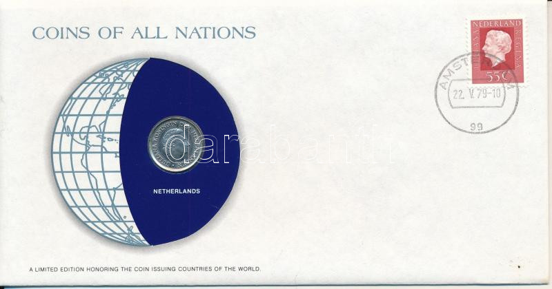 Hollandia 1979. 25c Ni "Nemzetek pénzérméi" felbélyegzett borítékban, bélyegzéssel T:UNC