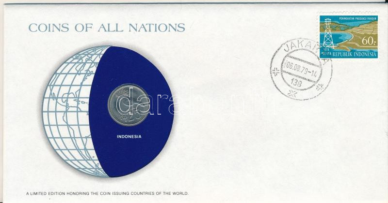 Indonézia 1971. 25R Cu-Ni "Nemzetek pénzérméi" felbélyegzett borítékban, bélyegzéssel T:UNC