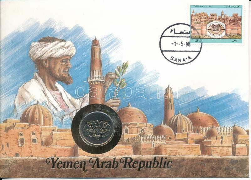 Jemen 1985. 50f Cu-Ni felbélyegzett borítékban, bélyegzéssel, német nyelvű leírással T:UNC