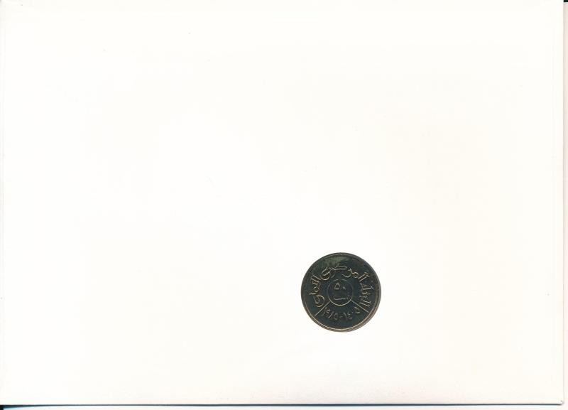 Yemen 1985. 50 Fils Cu-Ni in envelope with stamp, cancellation and a prospectus in german C:UNC