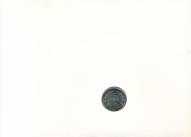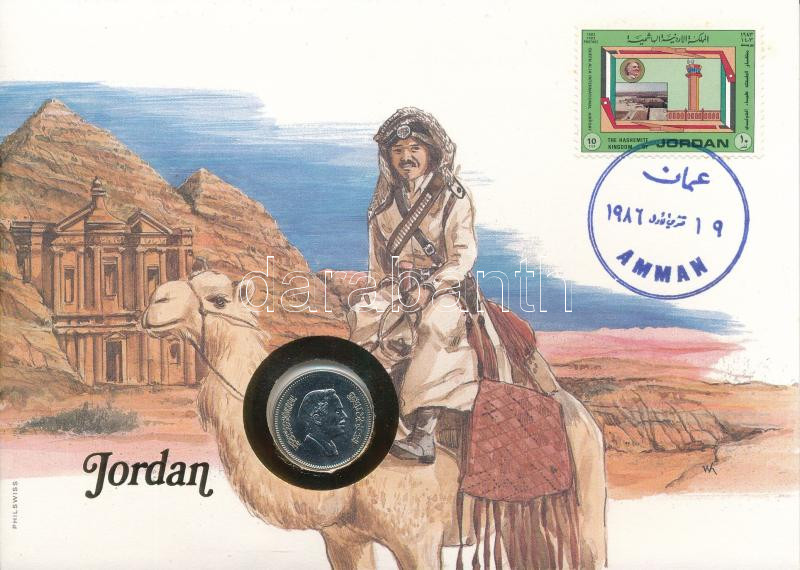 Jordánia 1984. 25f Cu-Ni felbélyegzett borítékban, bélyegzéssel T:UNC Jordan 1984. 25 Fils Cu-Ni in envelope with stamp, cancellation and a prospectus in german C:UNC