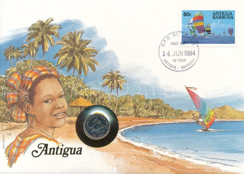 Kelet-Karibi Államok / Antigua 1981. 10c felbélyegzett borítékban, bélyegzéssel, német nyelvű leírással T:UNC East Caribbean States / Antigua 1981. 10 Cents in envelope with stamp cancellation and prospectus in German C:UNC