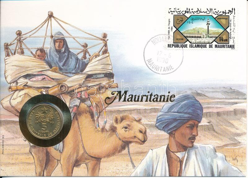 Mauritánia 1990. 5O érmés borítékban, bélyeggel és bélyegzéssel, német nyelvű tájékoztató lappal T:AU