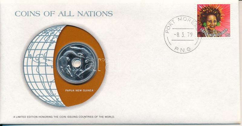 Pápua Új-Guinea 1979. 1K Cu-Ni "Nemzetek pénzérméi" felbélyegzett borítékban, bélyegzéssel T:UNC
