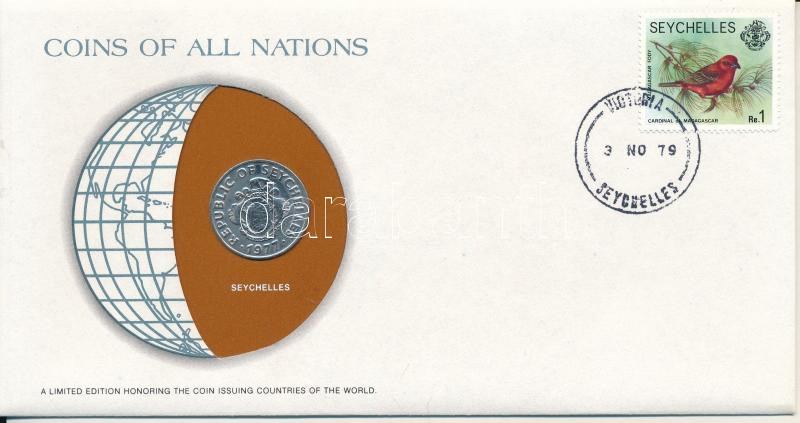 Leírás: Seychelles-szigetek 1977. 50c Cu-Ni "Nemzetek pénzérméi" felbélyegzett borítékban, bélyegzéssel T:UNC