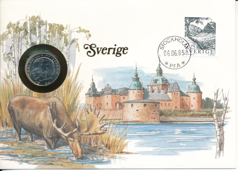 Sweden 1984. 1 Kronor in envelope with stamp and cancellation, with German description C:UNC