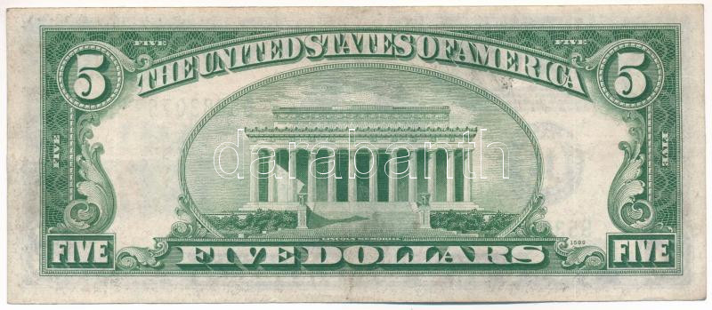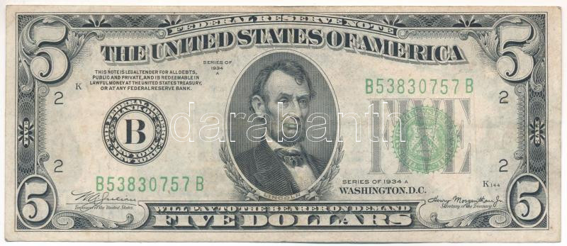 Amerikai Egyesült Államok 1934-1945 (1934A) 5$ "Federal Reserve Note" zöld pecsét "William Alexander Julian - Henry Morgenthau" T:F erős papír