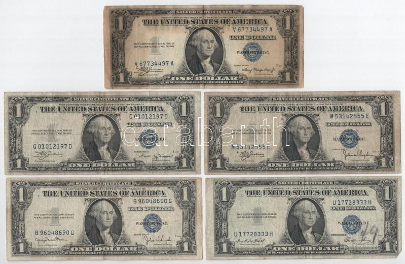 Amerikai Egyesült Államok 1935. 1$ Silver Certificate - kisméretű", kék pecsét (5xklf sorozat: 1935A, 1935B, 1935C, 1935D, 1935E) T:F,VG USA 1935. 1 Dollar "Silver Certificate - small size", blue seal (5xdiff series: 1935A, 1935B, 1935C, 1935D, 1935E) C:F,VG Krause P#416