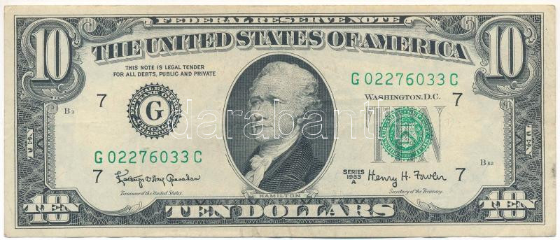 Amerikai Egyesült Államok 1965-1966 (1963A) 10$ "Federal Reserve Note" zöld pecsét "Kathryn O'Hay Granahan - Henry Hamill Fowler" T:F erős papír