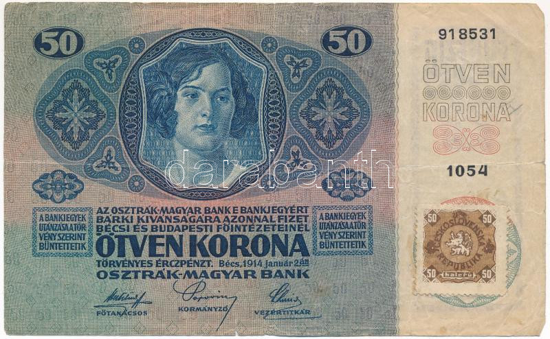 Czechoslovakia 1914. 50 Korona "1054 918531" with czechoslovakian 50 Halerov stamp C:F