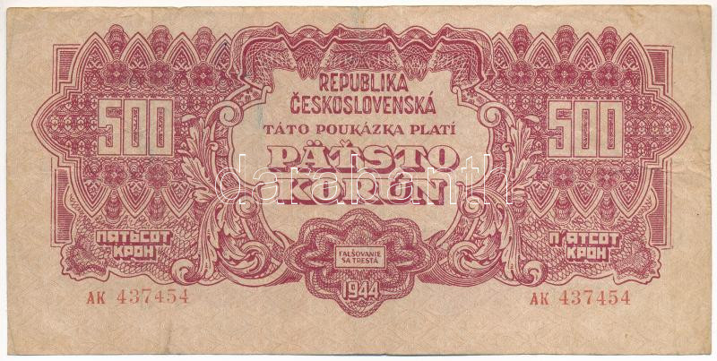 Leírás: Csehszlovákia 1944. 500K "AK 437454" T:F / Czechoslovakia 1944. 500 Korun "AK 437454" C:F