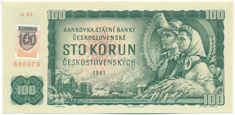 Leírás: Csehszlovákia 1993. (1961) 100K szlovák bélyeggel T:AU Czechoslovakia 1993. (1961) 100 Korun with Slovak stamp C:AU