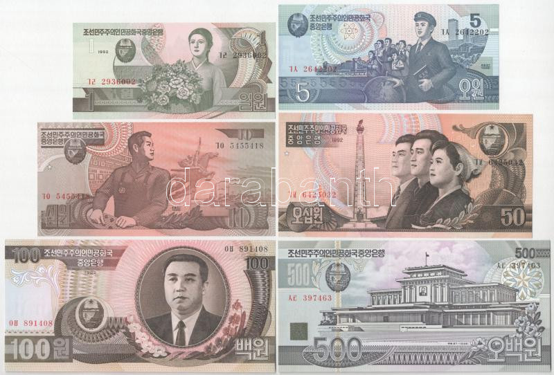 North Korea 1992-1998... https://www.darabanth.com/hu/472-Gyorsarveres/472.0/Numizmatika/Kulfoldi-bankjegyek~2000016/Eszak-Korea-1992-1998-1W-500W-6xklf-TUNC-AU-North-Korea-1992-1998-1-Whon-500-Won-6xdiff-C~II3200039