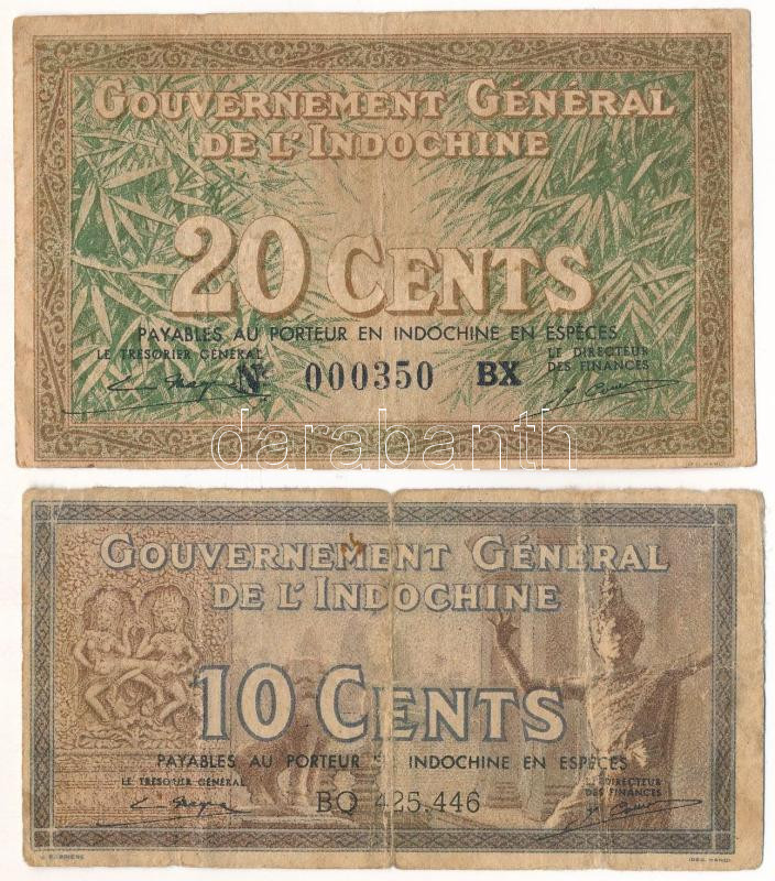 French Indochina 1939. 10 Cents + 20 Cents with low "BX 000350" serial number C:VG