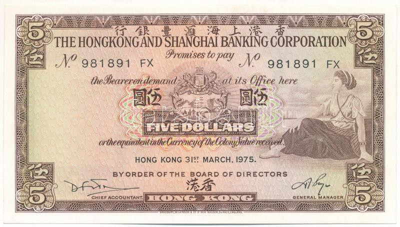 Hongkong 1975. 5$ T:UNC Hong Kong 1975. 5 Dollars C:UNC Krause P#181 https://www.darabanth.com/hu/472-Gyorsarveres/472.0/Numizmatika/Kulfoldi-bankjegyek~2000016/Hongkong-1975-5USD-TUNC-Hong-Kong-1975-5-Dollars-CUNC-Krause-P23181~II3199544