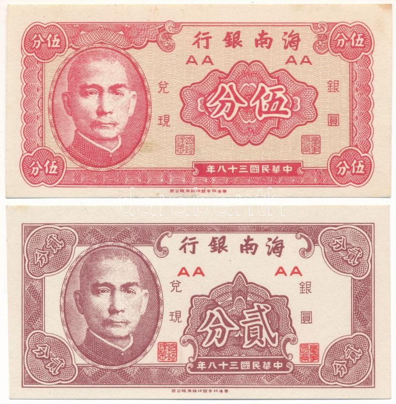 Kína / Hainan Bank 1949. 2f + 5f T:AU egyiken folt