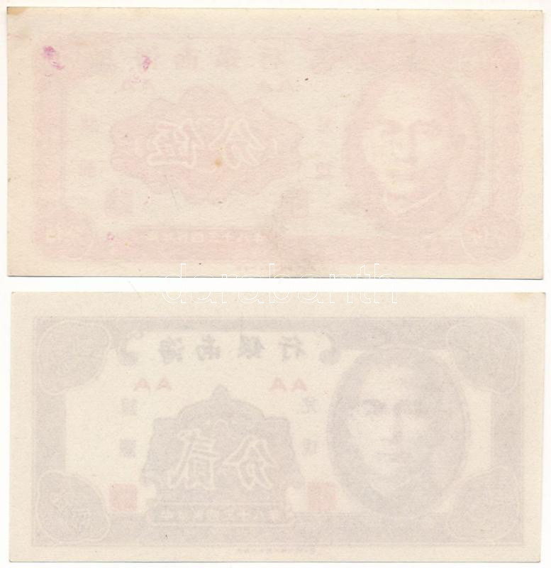 Leírás: Kína / Hainan Bank 1949. 2f + 5f T:AU egyiken folt