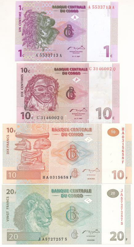 Leírás: Kongói Demokratikus Köztársaság 1997. 1c + 10c + 2003. 10Fr + 20Fr T:UNC,AU