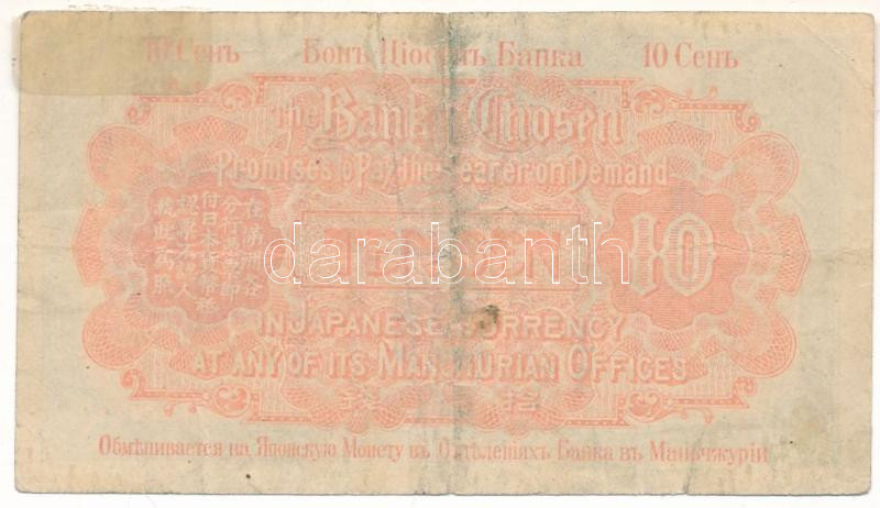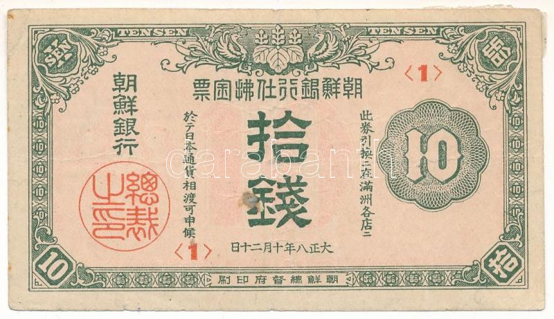 Korea / Japane... https://www.darabanth.com/hu/472-Gyorsarveres/472.0/Numizmatika/Kulfoldi-bankjegyek~2000016/Korea-Japan-protektoratus-1937-10s-TF-VG-ragasztas-Korea-Japanese-Protectorate-1937-10-Se~II3199863
