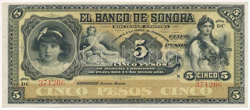 Leírás: Mexikó / Sonora DN (1911) 5P "DU 371266" T:AU Mexico / Sonora ND (1911) 5 Pesos "DU 371266" C:AU Krause P#S419