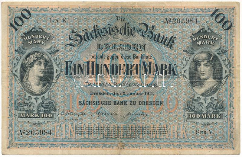Leírás: Német Birodalom / Württemberg 1911. 100M vízjeles papíron T:F German Empire / Württemberg 1911. 100 Mark on watermarked paper C:F