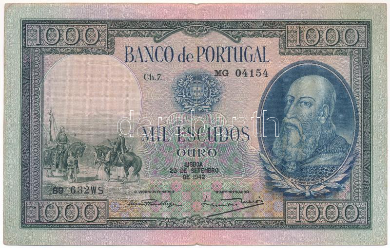 Portugal 1942. 1000... https://www.darabanth.com/hu/472-Gyorsarveres/472.0/Numizmatika/Kulfoldi-bankjegyek~2000016/Portugalia-1942-1000Esc-B9-632WS-TF-Portugal-1942-1000-Escudos-B9-632WS-CF-Krause-156~II3195116