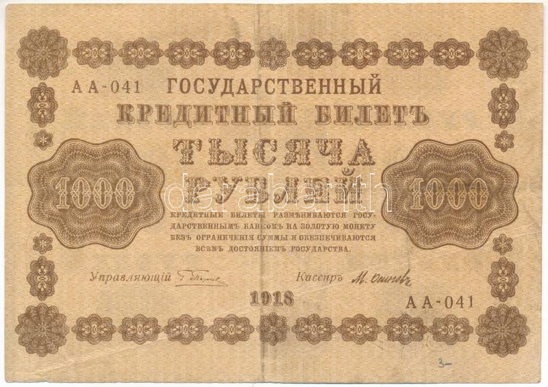 Russian S... https://www.darabanth.com/hu/472-Gyorsarveres/472.0/Numizmatika/Kulfoldi-bankjegyek~2000016/Szocialista-Szovetsegi-Szovjet-Koztarsasag-1918-1000R-TF--Russian-Socialist-Federated-Soviet~II3195329
