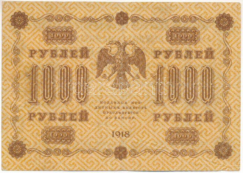Leírás: Szocialista Szövetségi Szovjet Köztársaság 1918. 1000R T:F