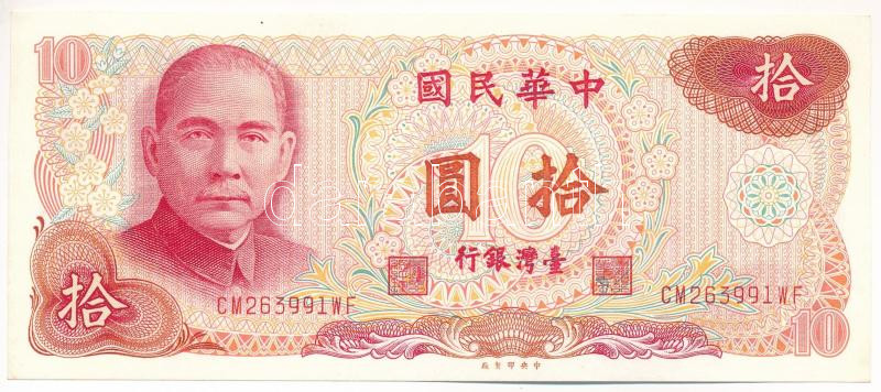 Krause P#1970 https://www.darabanth.com/hu/472-Gyorsarveres/472.0/Numizmatika/Kulfoldi-bankjegyek~2000016/Tajvan-1960-10Y-TAU-Taiwan-1960-10-Yuan-CAU-Krause-P231970~II3200214