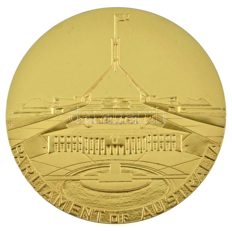 Ausztrália DN "Ausztrál Parlament" aranyozott bronz emlékérem eredeti dísztokban (50mm) T:UNC