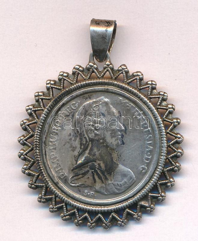 Leírás: DN Mária Terézia 1780SF tallérjának jelzett Ag miniatűrje, keretben medállá alakítva (5,74g/0.800/29mm) T:XF patina