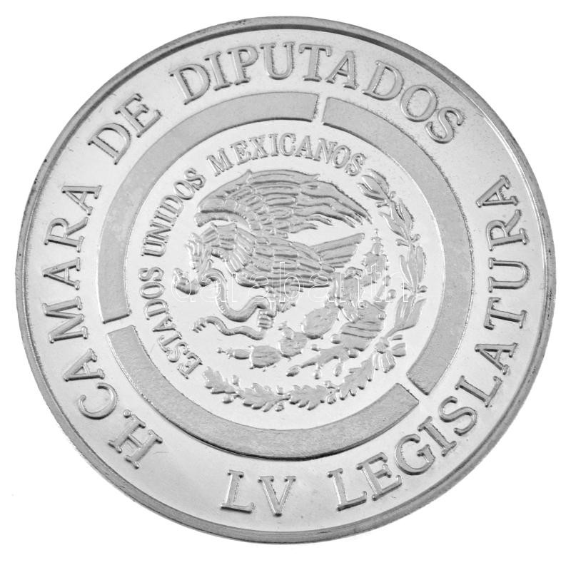 Mexikó ~1990. "Mexikói Képviselőház" peremen jelzett Ag emlékérem eredeti dísztokban (152,21g/0.999/68mm) T:UNC