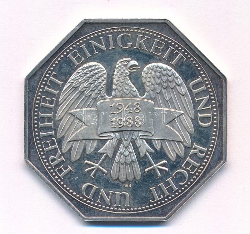 NSZK 1988. "40 Jahre Deutsche Mark / Einigkeit und Rech und Freiheit" jelzett Ag emlékérem (20,02g/0.999/41mm) T:UNC (eredetileg PP) patina