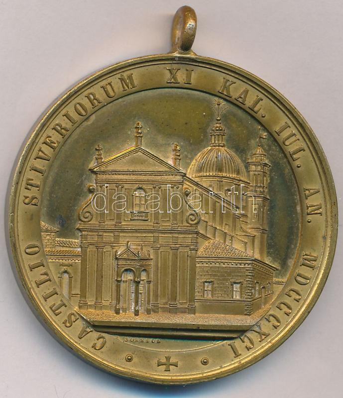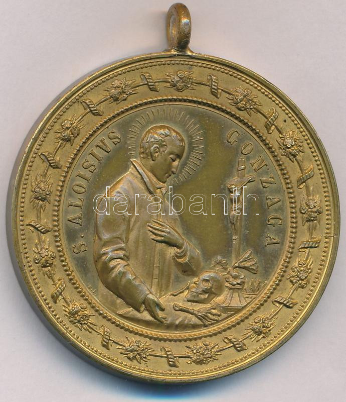 Olasz Államok / Pápai Állam 1891. "CASTILIO STIVERIORUM XI KAL. IUL. AN. MDCCCXCI / S. ALOISIVS GONZAGA" aranyozott bronz emlékérem, füllel (48mm) T:XF