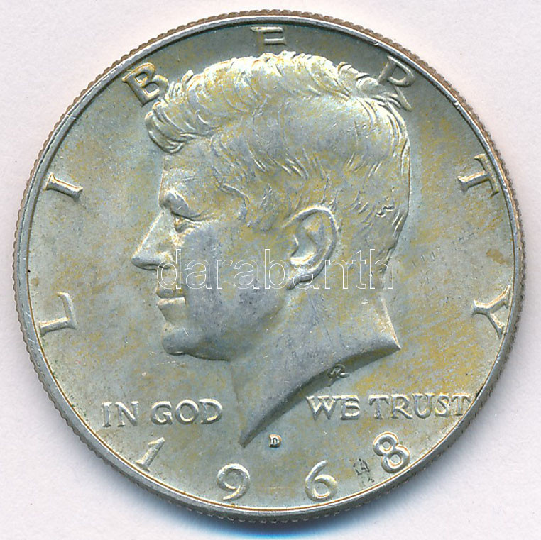 Amerikai Egyesült Államok 1968D 1/2$ Ag "Kennedy" T:AU patin... https://www.darabanth.com/hu/472-Gyorsarveres/472.0/Numizmatika/Kulfoldi-fem-es-ezustpenzek~2000017/Amerikai-Egyesult-Allamok-1968D-12USD-Ag-Kennedy-TAU-patina-USA-1968D-12-Dollar-Ag-Kennedy-C~II2969838