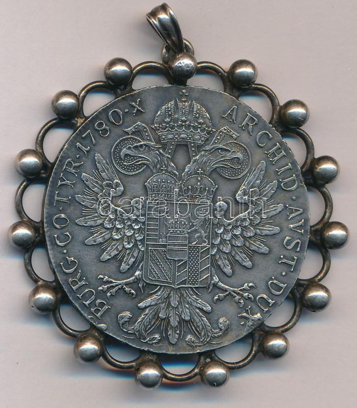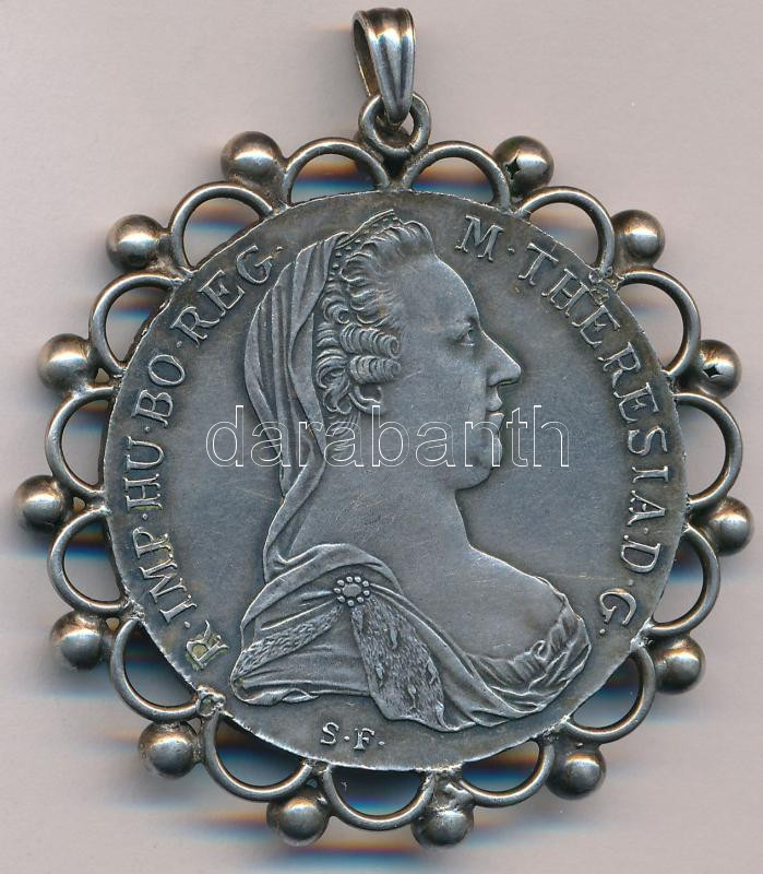 Austria 1780SF Thaler Ag "Maria Theresia" restrike in hallmarked, only partially readable frame (~33,44g) C:AU patina