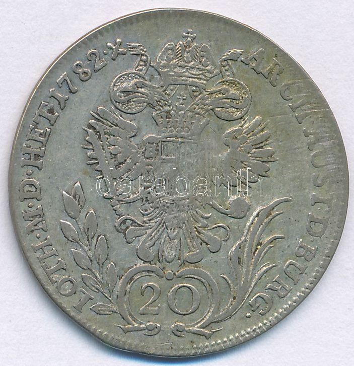 Austria 1782F 20 K... https://www.darabanth.com/hu/472-Gyorsarveres/472.0/Numizmatika/Kulfoldi-fem-es-ezustpenzek~2000017/Ausztria-1782F-20kr-Ag-II-Jozsef-TVF-Austria-1782F-20-Kreuzer-Ag-Joseph-II-CVF-Krause-KM232~II3198082