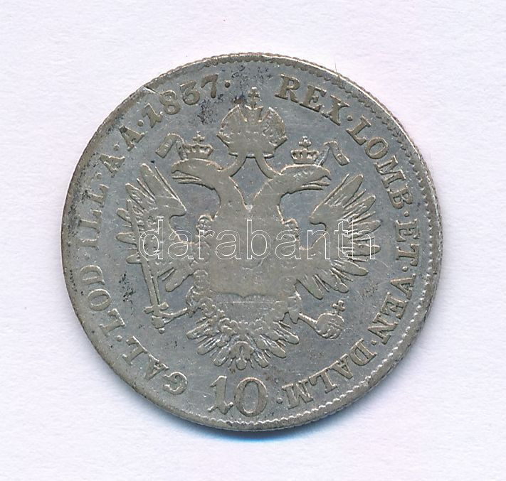 Austria 1837A 10 Kreuzer Ag C:F pa... https://www.darabanth.com/hu/472-Gyorsarveres/472.0/Numizmatika/Kulfoldi-fem-es-ezustpenzek~2000017/Ausztria-1837A-10kr-Ag-TF-patina--Austria-1837A-10-Kreuzer-Ag-CF-patina-Krause-KM232202~II3180664