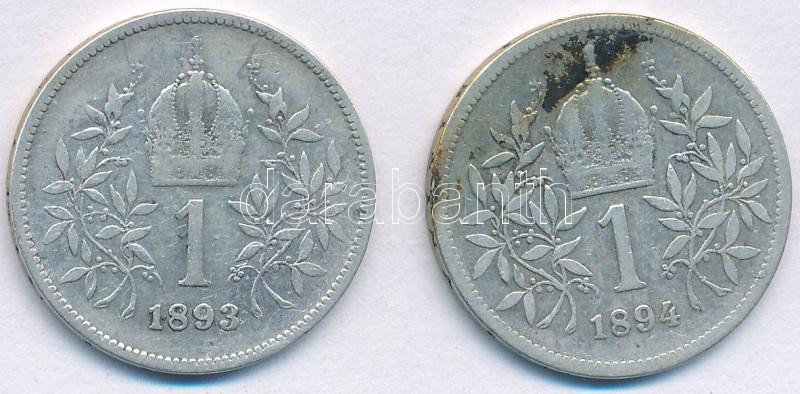 Leírás: Ausztria 1893-1894. 1K Ag "Ferenc József" (2xklf) T:F patina Austria 1893-1894. 1 Corona Ag "Franz Joseph" (2xdiff) C:F patina