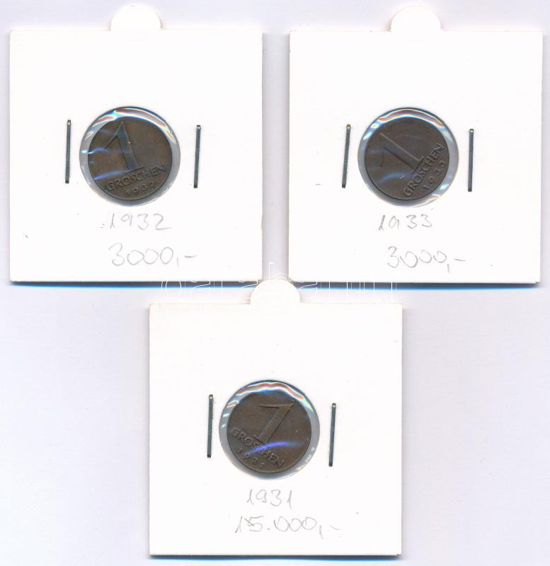 Leírás: Ausztria 1931-1933. 1gr bronz (3xklf) T:XF,VF Austria 1931-1933. 1 Groschen bronze (3xdiff) C:XF,VF Krause KM#2836
