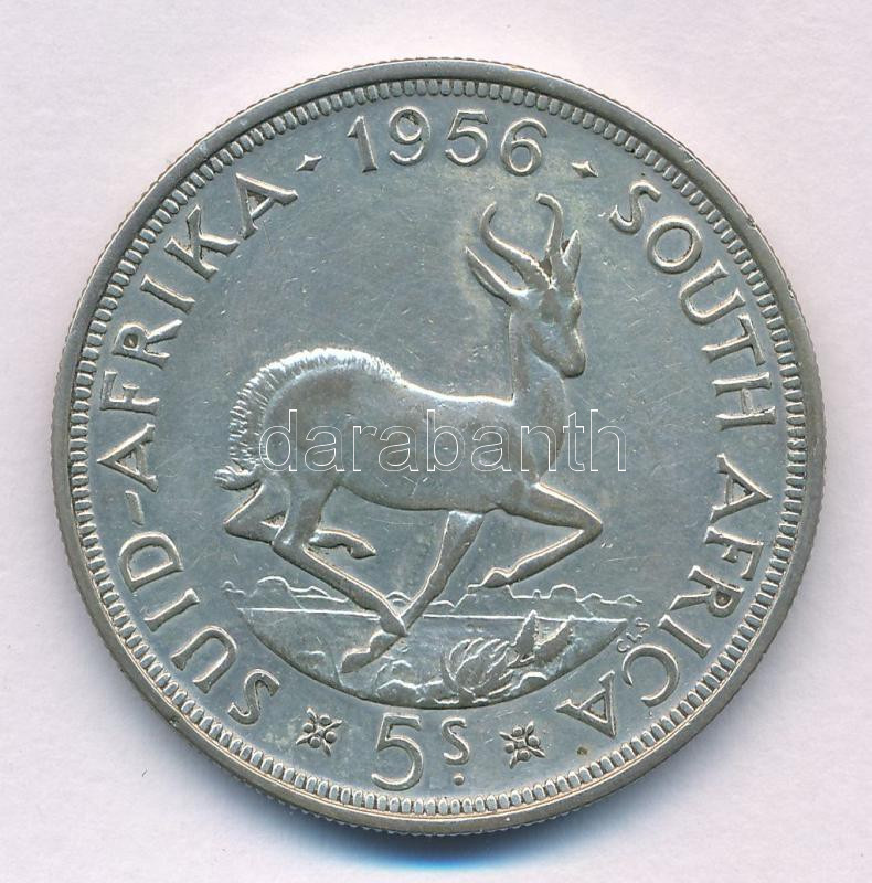Leírás: Dél-Afrika 1956. 5Sh Ag "II. Erzsébet" T:XF patina