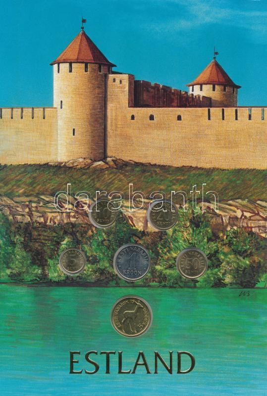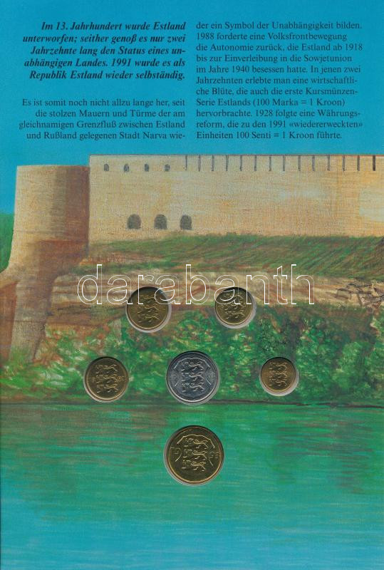 Észtország 1991-1993. 5s-5K (6xklf) forgalmi összeállítás karton díszlapon T:UNC,AU Estonia 1991-1993. 5 Sen - 5 Krooni (6xdiff) coin set on illustrated cardboard sheet C:UNC,AU