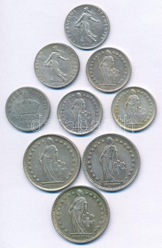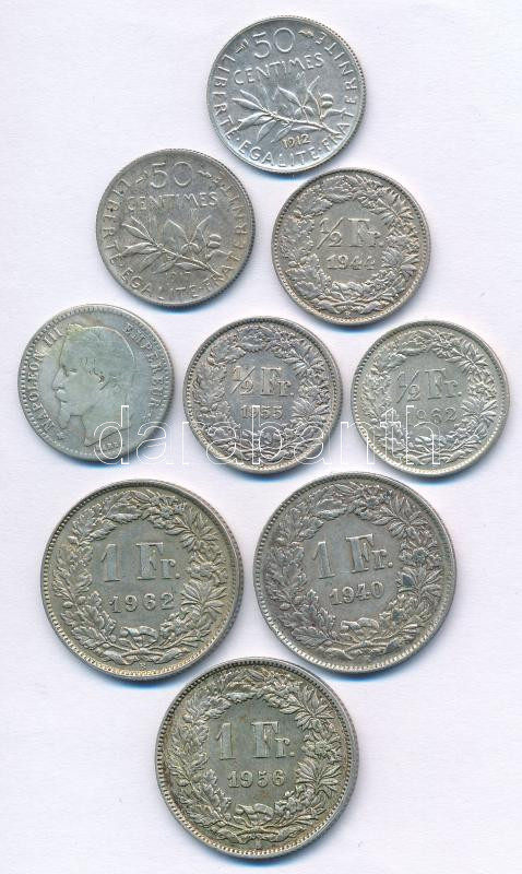 Franciaország / II. Császárság 1864A 50c Ag "III. Napóleon" + Svájc 1912-1962. 50c-1Fr Ag (8xklf) T:AU-F